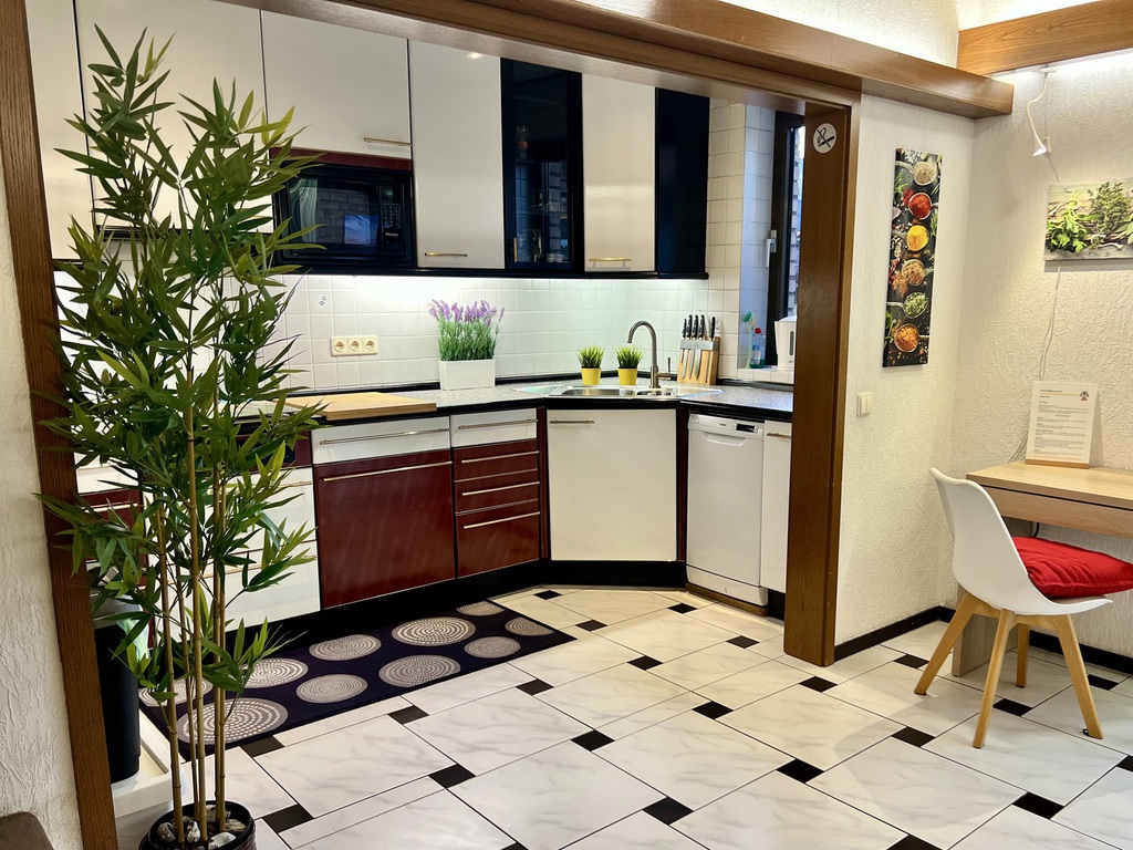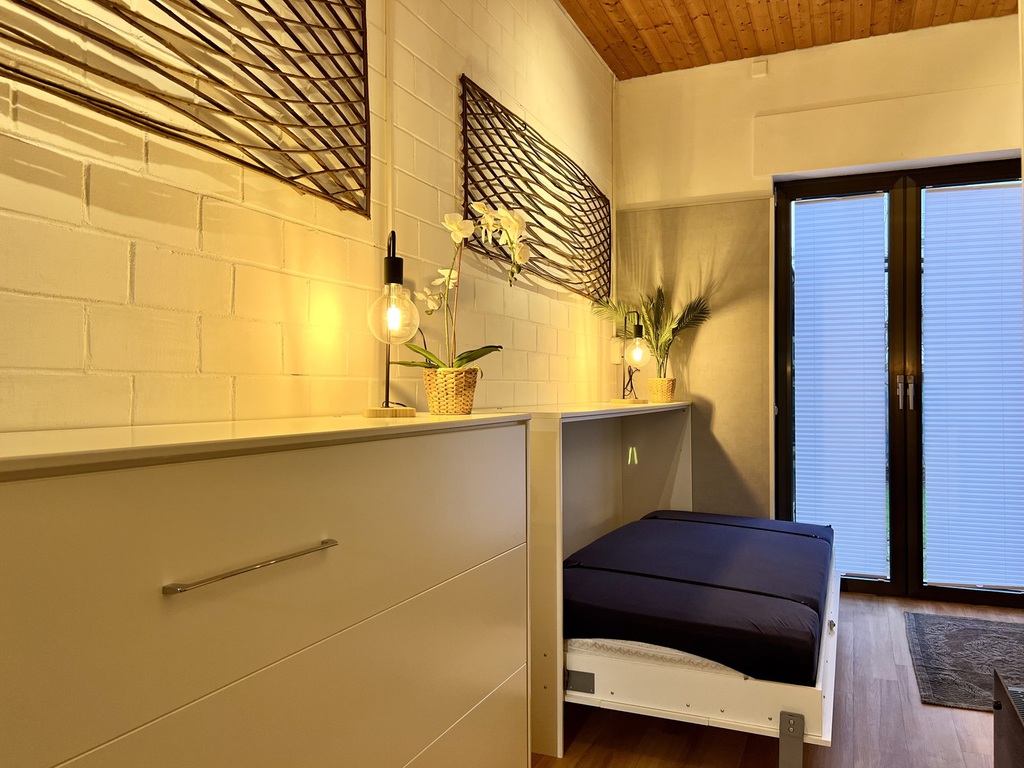 Vom Wintergarten aus gelangen Sie direkt in den privaten Garten, der Ihren Aufenthalt mit Ruhe und Grün abrundet. Ob Kaffee am Morgen, Spielen mit Kindern oder ein entspannter Ausklang des Tages – der Garten bietet Raum zum Durchatmen.